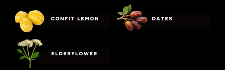 トップ:ベルガモット、コンフィレモンアコード、クラスデーツ、ピンクペッパー、ラム