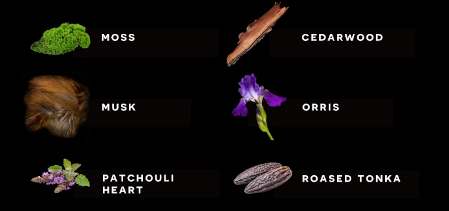 ラストノートでは、シダーウッドやカシミヤ、ムスキーなオークモスが時を超えた神秘と安定感をもたらします。